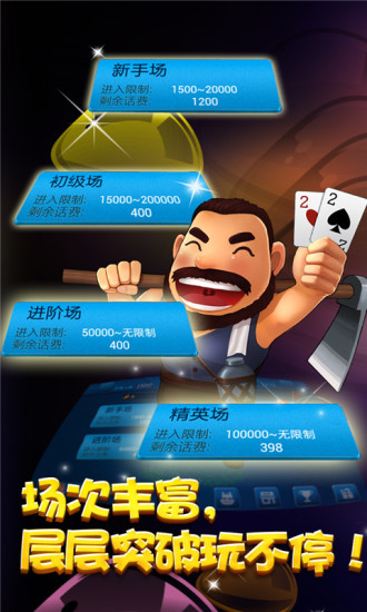 场次丰富:游戏内分新手场,初级场,进阶场,精英场.层层突破让你玩不停!