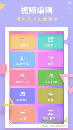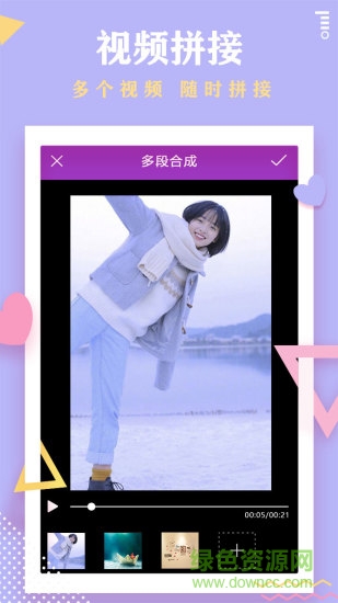 秀秀视频剪辑软件是一款非常便捷的视频剪辑app,可以自由截取多个片段进行拼接,可以添加音乐、可以添加和去除水印,可以对视频进行压缩和变速处理,欢迎感兴趣的朋友到绿色资源网下载使用!