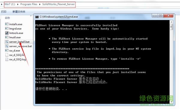 4.管理员身份运行SolidWorks_Flexnet_Server \ server_install.bat,等待启动成功