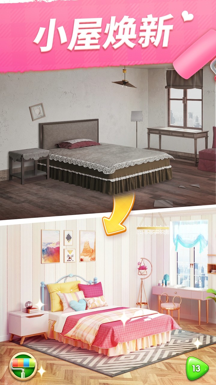 收集通关金币,购买家具装扮你的卧室,窗帘沙发墙壁任你改造。