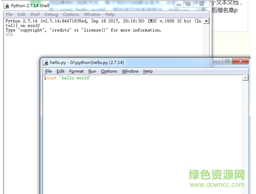 3、如果您直接关闭,刚才写的代码就会丢失。此时,您需要新建一个文本文档,写入print 'hello world',然后将文件名改写为:hello.py。