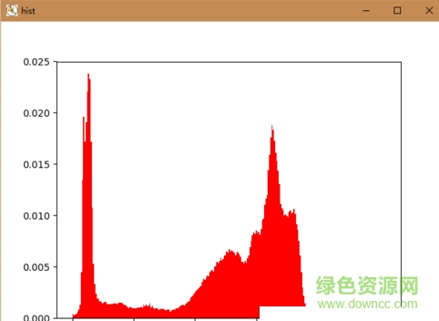n, bins, patches = plt.hist(arr, bins=256, normed=1,edgecolor='None',facecolor='red') plt.show()
