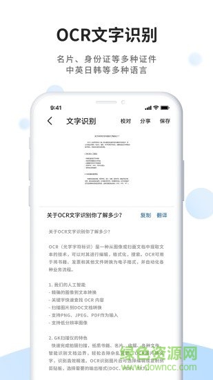 强大的OCR文字识别技术支持:中文、英语、日语、法语、德语、俄语、葡萄牙语、西班牙语、意大利语等16种语言文字的识别。