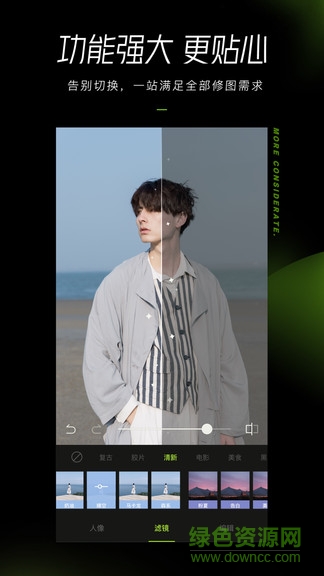 1、人像升级,get大片级美颜肤质,质感肤质,更高级