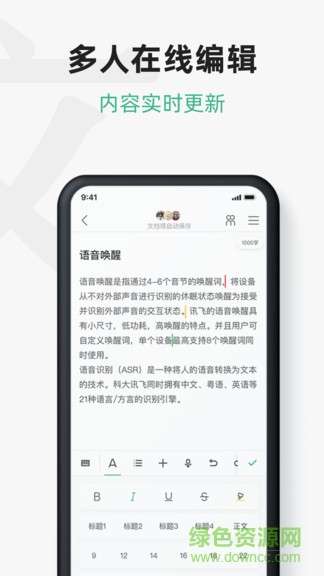 讯飞文档是由科大讯飞出品的一款支持多人多端同时编辑的在线文档App。可以在电脑端、移动端、平板等多类型设备上随时随地查看和修改文档,轻松提升办公效率。