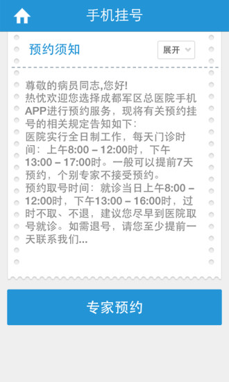 成都军区总医院app是一款生活服务类手机软件,主要是为市民看病就医提供优质便捷的医疗服务,从预约挂号到智能分诊提供一站式的便捷服务,是您身边的移动医院,欢迎大家下载体验!
