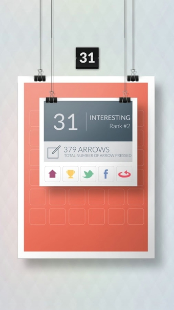 下一个箭头(The Next Arrow)是一款休闲益智类手机游戏,操作很简单,玩家只需要想尽一切办法创造出尽可能长的箭头,游戏看是简单,但是要想的高分却并不那么容易,喜爱的朋友赶快下载体验吧!