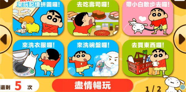 蜡笔小新之小帮手大作战是一款老少皆宜的以《蜡笔小新》为题材的全新益智类游戏,游戏更加比较适合儿童,在游戏中拥有多种不同的挑战,这些挑战都是来源自我们的日常生活,比如打扫、洗衣等各种家务事或者是购物、照顾小白等等,而蜡笔小新这一卡通形象和游戏风格也更加的比较吸引儿童,让儿童在游戏中体验到家务的乐趣!