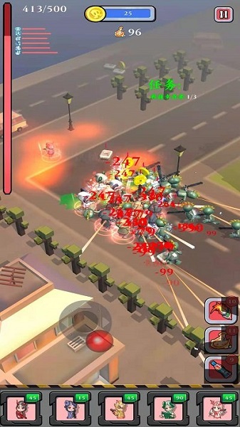 1、非常搞怪的游戏画风,Q版角色拥有很强的战斗力,轻松完成任务收获金币