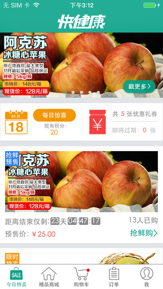 快健康,国内首创健康生鲜一小时配送,精选全球正规健康有机食品。主要通过手机客户端下单,提供健康新鲜的产品与便捷贴心的服务,精心呵护您和家人的健康。