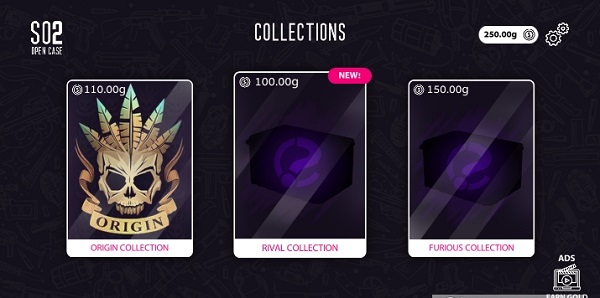 -在开箱板块,玩家可以花费金币,打开不同的箱子,随机获取其中的各种枪械、近战皮肤。