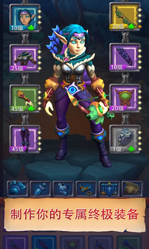 3、你可以通过简单的操控来施放法术、制作物品和升级装备,并且只需点击几下即可升级英雄的独特能力。