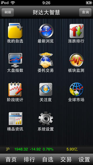 财达证券手机大智慧版是基于大智慧手机证券平台自建的手机证券交易系统,具备沪深市场行情、大智慧F10资讯、全球市场、股指期货、阶段统计、板块监测、拼音查询等特色功能,