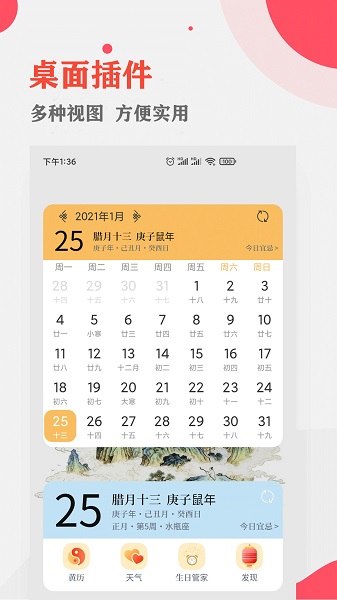 看农历查宜忌知天气,一历在手,万历皆有。适合中国人的万年历,集日历、农历、天气、记事、提醒于一身的生活助手。