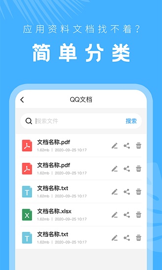 2、应用资料文档不好找,用来源分类的方式,需要的文档都能简单快速查找。