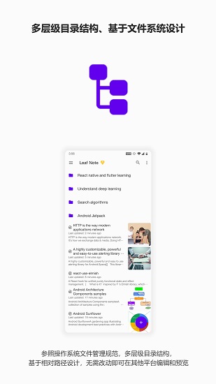 1、言叶是基于文件系统的多层级目录结构设计,同时又提供了标签和分类两种管理方式。在笔记中,引用的图片和笔记使用的都是相对目录,因此,言叶的笔记是可以直接在其他平台编辑和预览的。