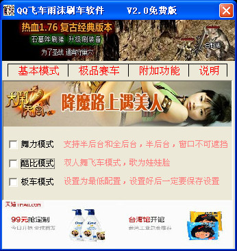 QQ飞车雨沫刷车软件是一款QQ飞车辅助工具,功能强大,包括舞力模式。酷比模式,板车模式,四喷赛车,五喷赛车,网吧加成,CKD兑换网,临时驾照,普通防封等非常实用的功能。
