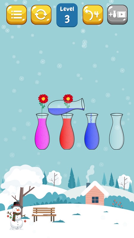 3、随机杯子和沙子颜色分布,每个关卡都是新的挑战,动脑思考进行闯关;