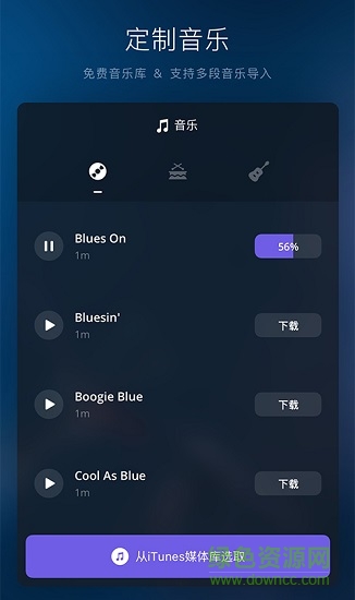 【音乐素材】自带在线乐库,支持读取本地音乐,视频提取音乐。还可以通过文件管理器 、微信、qq等导入,丰富你的音乐素材库。
