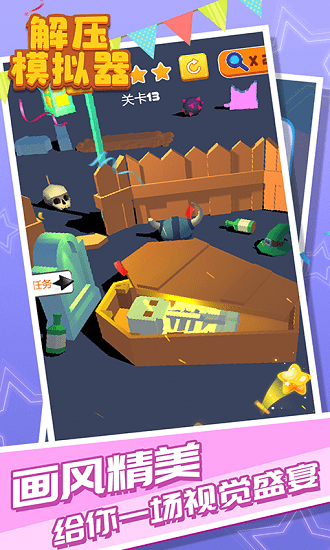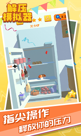 解压模拟器是一款非常好玩的休闲解压手游,在这里玩家能够慢慢的放松自己的心态,让各种压力都能够得到缓解,游戏的画面非常流畅,满满的卡通风格也让人能够觉得非常的舒服,各种可爱的关卡都能够让人觉得非常的有趣。