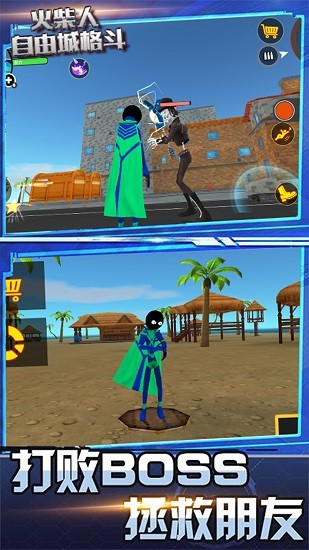 火柴人自由城格斗是火柴人系列的又一部作品,你在游戏中扮演的火柴人可以自由的穿梭于城市之中,在这里有很多的坏人等着你去解决,利用自己的超能力飞天快速到达坏人所在地,不仅如此,你还有多种装备可以使用,甚至你还可以穿上钢铁侠的战甲!