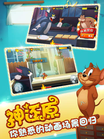 《猫和老鼠官方手游》是一款华纳经典动画《猫和老鼠》正版授权,由网易游戏诚意打造的互动跑酷手游,全新逗趣治愈画风,汤姆携手杰瑞,好伙伴欢乐跑酷,花样道具武器,随时随地尽情玩耍,场景、角色神还原,带你重返童年!游戏在场景、音效、玩法设置上都逼真还原了动画中热闹的嬉戏场面、熟悉的动画角色,力求让每一个追逐场景都似曾相识,每一次嬉闹打斗都有熟悉的影子,为玩家奉献一出原汁原味的视听盛宴