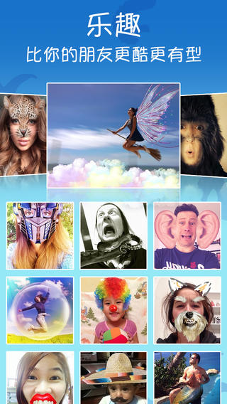 这是一个趣味的拍照应用,拥有多种特效,让你瞬间变成英雄、怪兽、魔法师等,还可以跟怪兽们来个“亲密接触”哦!有趣的姿势拍摄指导,会助你摆出更贴合特效的 pose。
