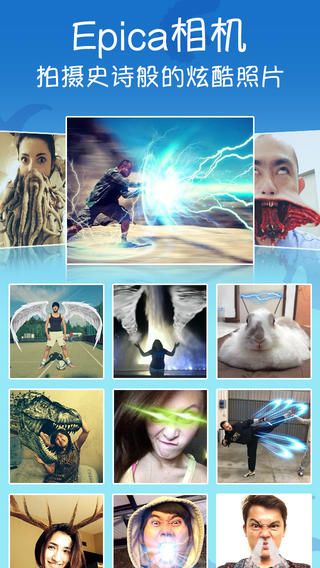 拿起你的手机,用epica开始拍照,一秒变英雄、怪物、魔法师、印第安人。只有你想不到,没有epica办不到!