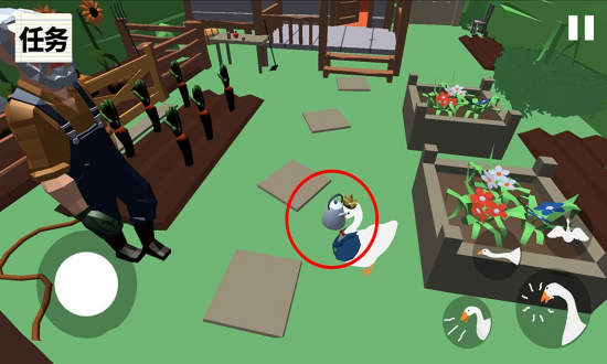 1、前行在广场中或者草丛里,去村民家里捣乱吧,作为一只不安分的大鹅就是这么大摇大摆并做一些有趣的事情,让村庄鸡飞狗跳;