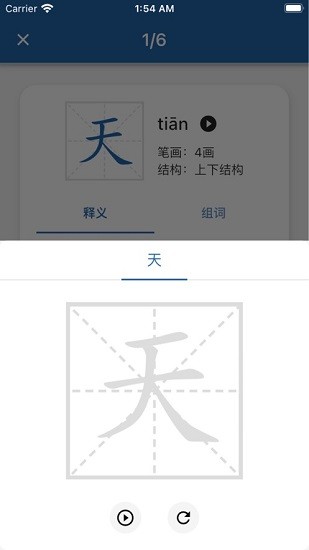 学写字:查看正确的汉字书写动画,并进行手写练习
