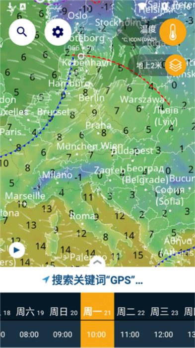 经ventusky应用程序,用户可以直接从数值模型获取数据。应用程序从多个数值模型采集数据。 除了众所周知美国gfs模型的数据之外,还显示加拿大gem模型和德国icon模型的数据,后者以高清晰地图模型而全球着名。