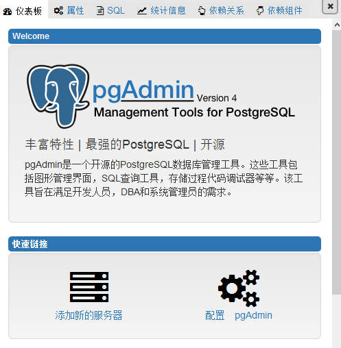 紧接着重启软件,pgAdmin4的界面已经变成中文。