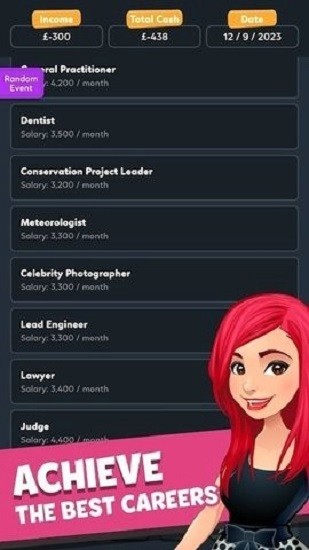 人生模拟器3一个电影制片人吗?这完全取决于自己,选择自己的学习道路,帮助你找到最好的工作,游戏有大约100条教育途径,拿到飞行员执照?研究海洋生物?随你,上最好的课程,找最好的工作,成为最富有的人,模拟游戏疯狂教育,与朋友交往,恋爱生活在一起,模拟圆满人生。