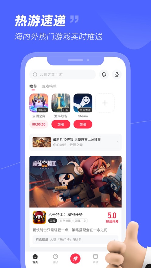 小黑盒加速器是专门为手游制作的网络优化工具。全面支持Steam、国内手游、国外手游。一键加速,解决游戏中遇到的延迟高,丢包,掉线,无法登录等问题,提高稳定性,让你更畅快的玩游戏。