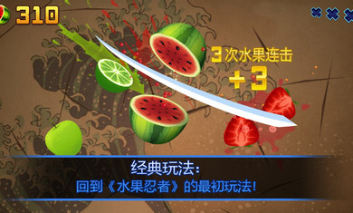 水果忍者单机中文版经典版切水果手游来袭!尽情享受切割的快乐,横屏操作更为轻松,面对不断出现的水果,你需要操控手指一一切到它们,小心不要碰到炸弹。面对越来越来的速度,考验手速的时刻到了!感兴趣的玩家快来下载体验更多吧!