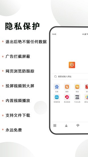 集成全新的快速下载器,即可在匿名浏览Internet时更快地下载文件,注意:使用隐身浏览器下载的所有内容只能通过此应用程序进行访问