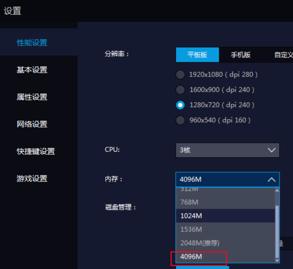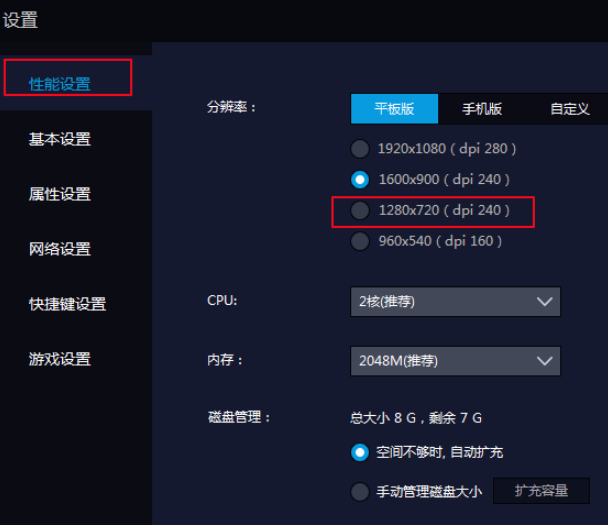 2.在打开的雷电模拟器设置窗口中,将分辨率调整为1280x720p。