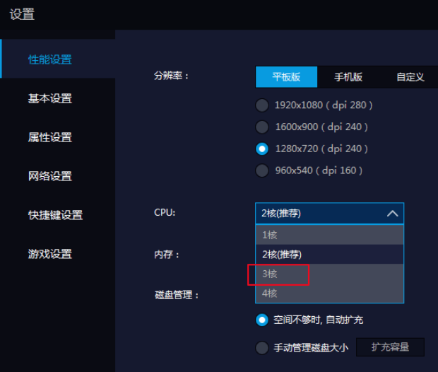 3.然后将CPU设置中的2核改为3核。
