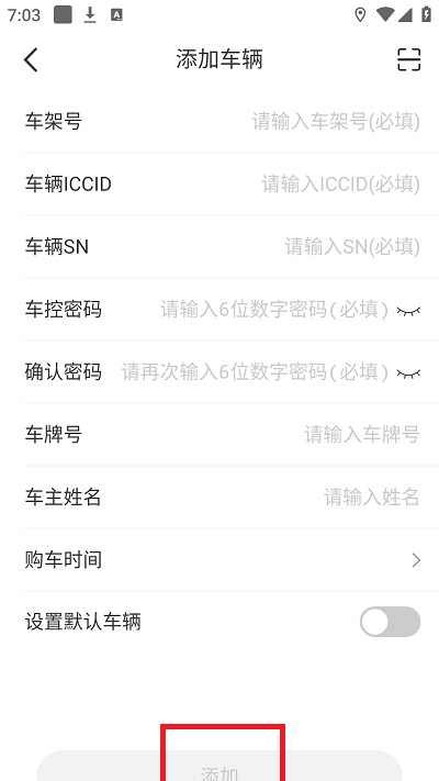 5、在绑定车辆界面,逐一输入所有需要填的信息之后,就可以点击下方的【添加】完成绑定操作。