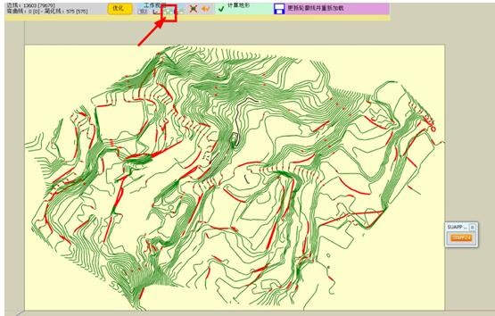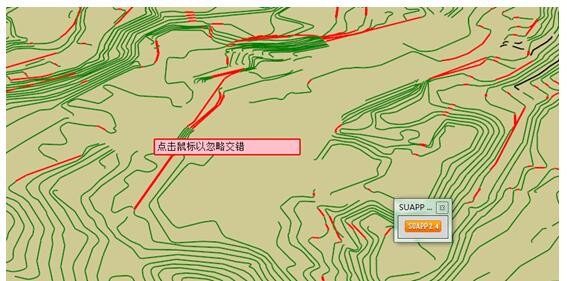 1、将光标在等高线编辑模式下时移动到红色区域的修复线上 会提示是否修复断线 点击之后会变为虚线 即为不修复状态