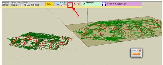 2、选择群组并点击生成地形工具图标 它会自动计算等高线之间的数据关系