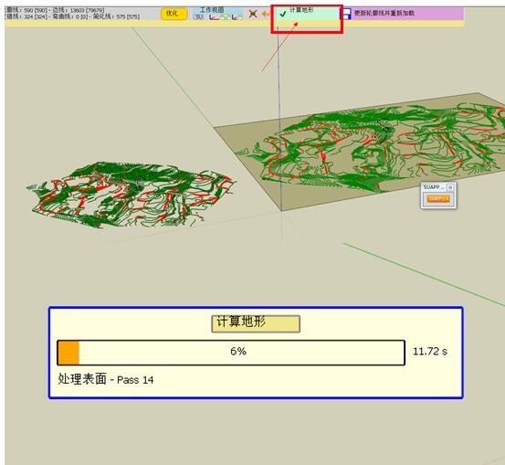 3、点击计算地形状态栏按钮 计算过程中会有等待