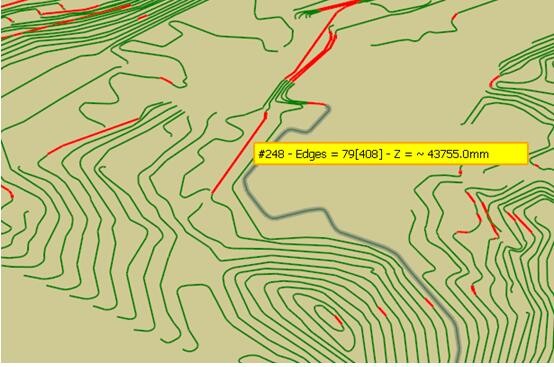 2、将光标移动到原始的等高线上时 会显示该条等高线的长度以及高度信息等
