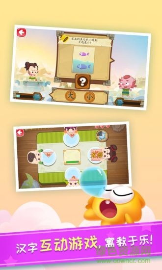 2.同时通过小游戏和汉字学习结合,提高孩子的学习兴趣,在游戏同时加深孩子对每个汉字的记忆,潜移默化的影响中,让孩子不知不觉的记住每一个汉字。