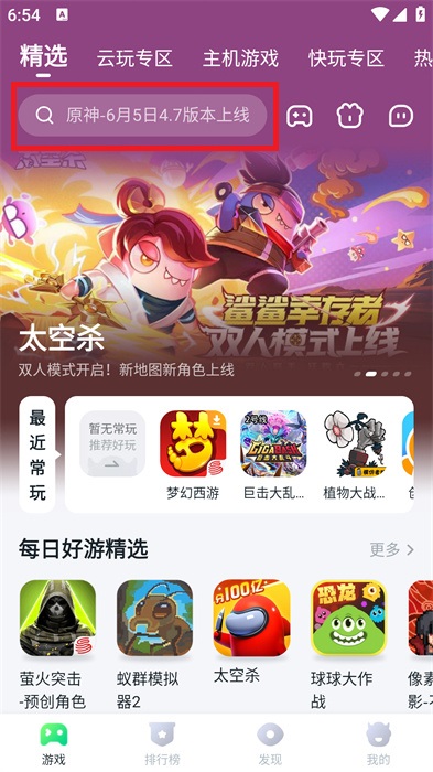 1、首先玩家需要下载最新版本的870游戏盒,然后进入到软件界面,在界面中点击上方的【搜索框】;