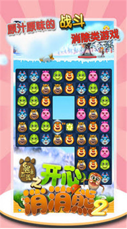 熊出没之开心消消熊2是一款全新的消除来战斗游戏,游戏以熊出没为题材,在前一部作品基础之上加入了更多的关卡,更丰富的道具系统和独特的消除战斗元素!