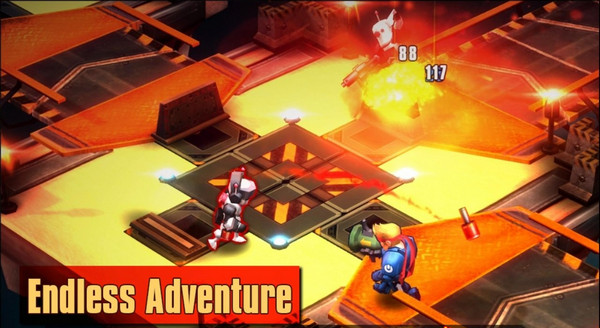 游戏采用全自动射击和触点式自动行走策略,滑动屏幕即可像切水果一样挥刀杀敌,遇到障碍还能单手翻越或者蹲地躲避,而且双击屏幕还可以就地翻滚。如此丰富的动作控制,虽然游戏是采用自动攻击模式,让玩家轻松了不少,但是面对复杂的地形和众多的敌人,光是走位就已经非常困难了,所以可不要小瞧那些冰冷的机器人哦。