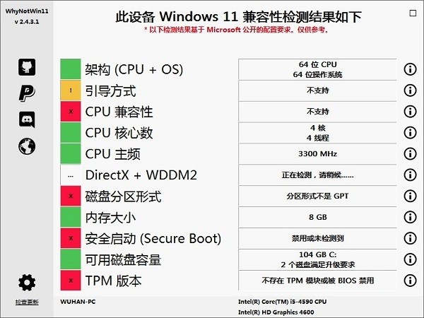whynotwin11软件可以检测用户系统能否升级到win11,查看准确检验结果,支持多种系统类型,显示详细的硬件状态,使用简单比原版检测工具更加方便,检测速度超快。