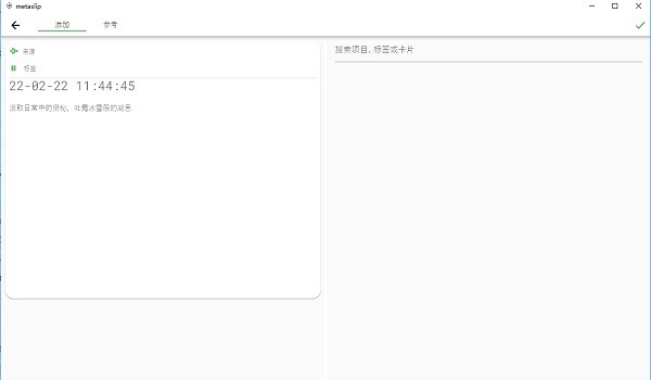 在元思笔记里面,你根本就不用考虑这一点,开发者把内容添加页面直接设置成卡片的样式,在这样一个创作环境里面,你压根儿就不会想要多写,而是想着我该怎么样去粗取精或者与其他卡片建立联系。