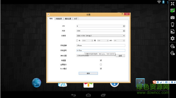 6.逍遥安卓后台自定义功能包括:CPU、内存、分辨率、手机品牌、手机型号、IMEI、隐藏功能栏、ROOT、软键盘、全屏、修改共享目录位置、模拟地图信息等等。